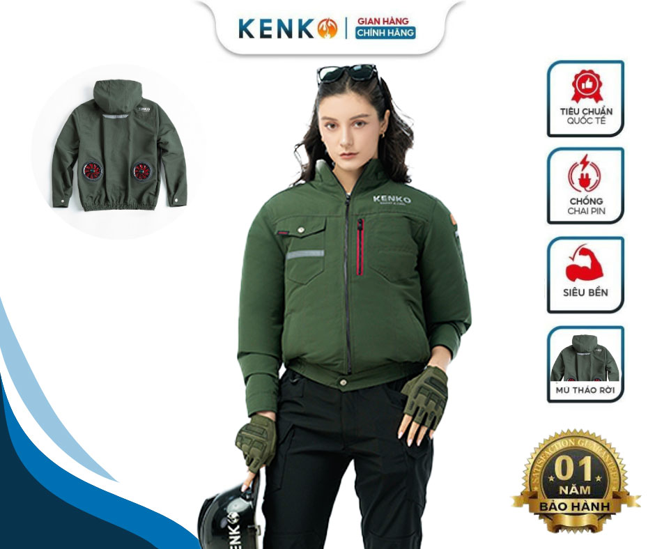 Review Áo điều hoà KENKO dài tay chất liệu vải taslan màu xanh rêu trượt nước-SM24