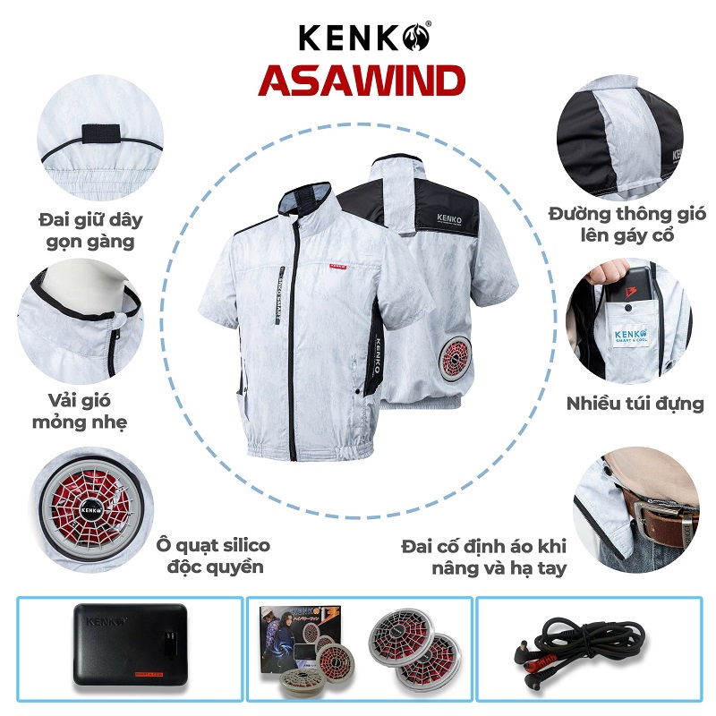 Review Áo điều hoà KENKO ASAWIND kiểu dáng cộc tay màu ghi