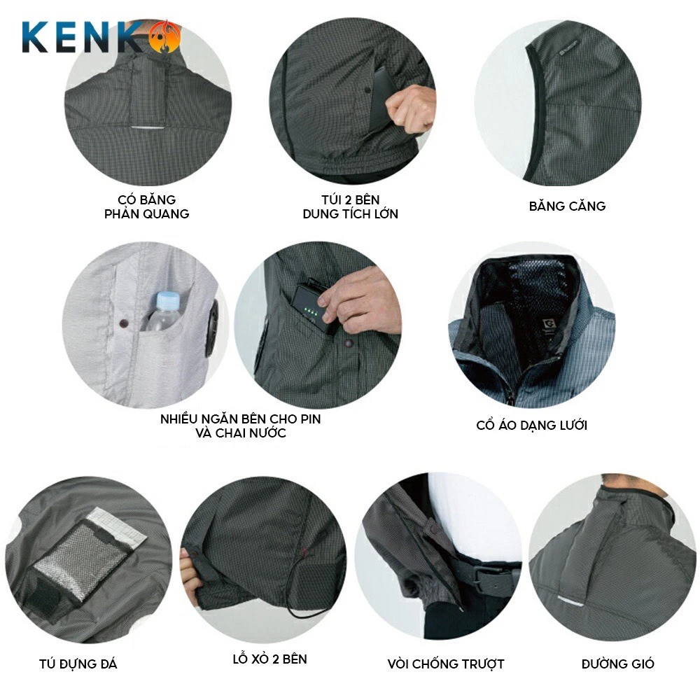 Áo điều hòa Kenko dài tay bán rời (không có pin + sạc + dây cáp)