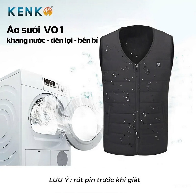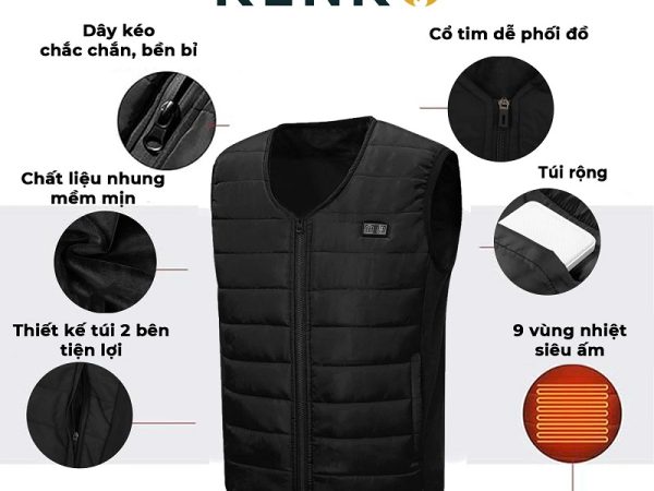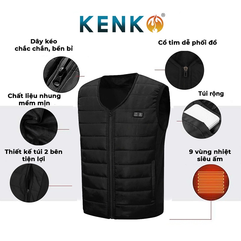 Áo khoác sưởi ấm gile KENKO V01 lót nỉ siêu ấm màu đen số lượng