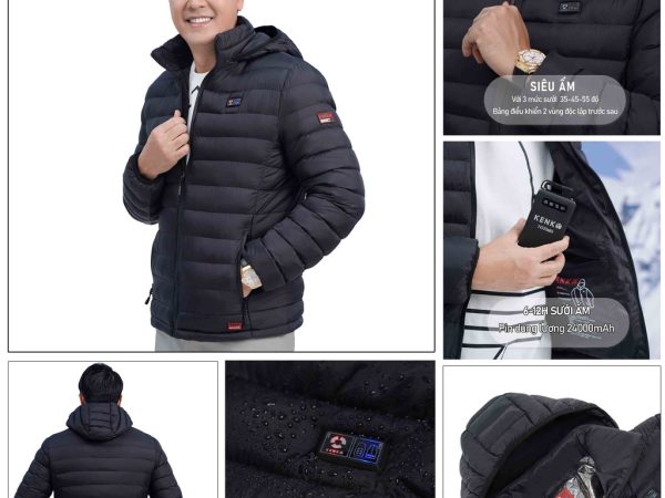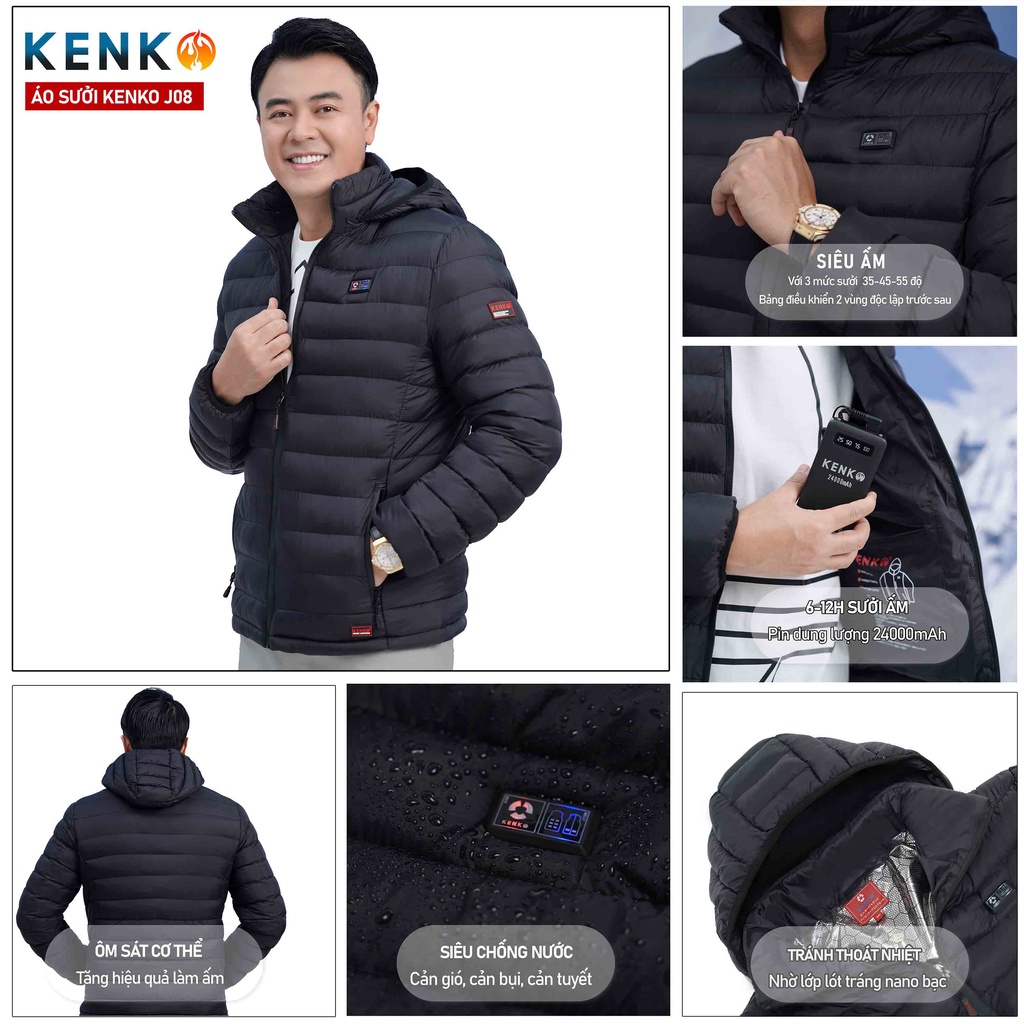 Áo khoác sưởi ấm Nhật Bản Kenko J08 siêu ấm, màu đen bán rời ( Không có Pin + Dây Cáp + Sạc )