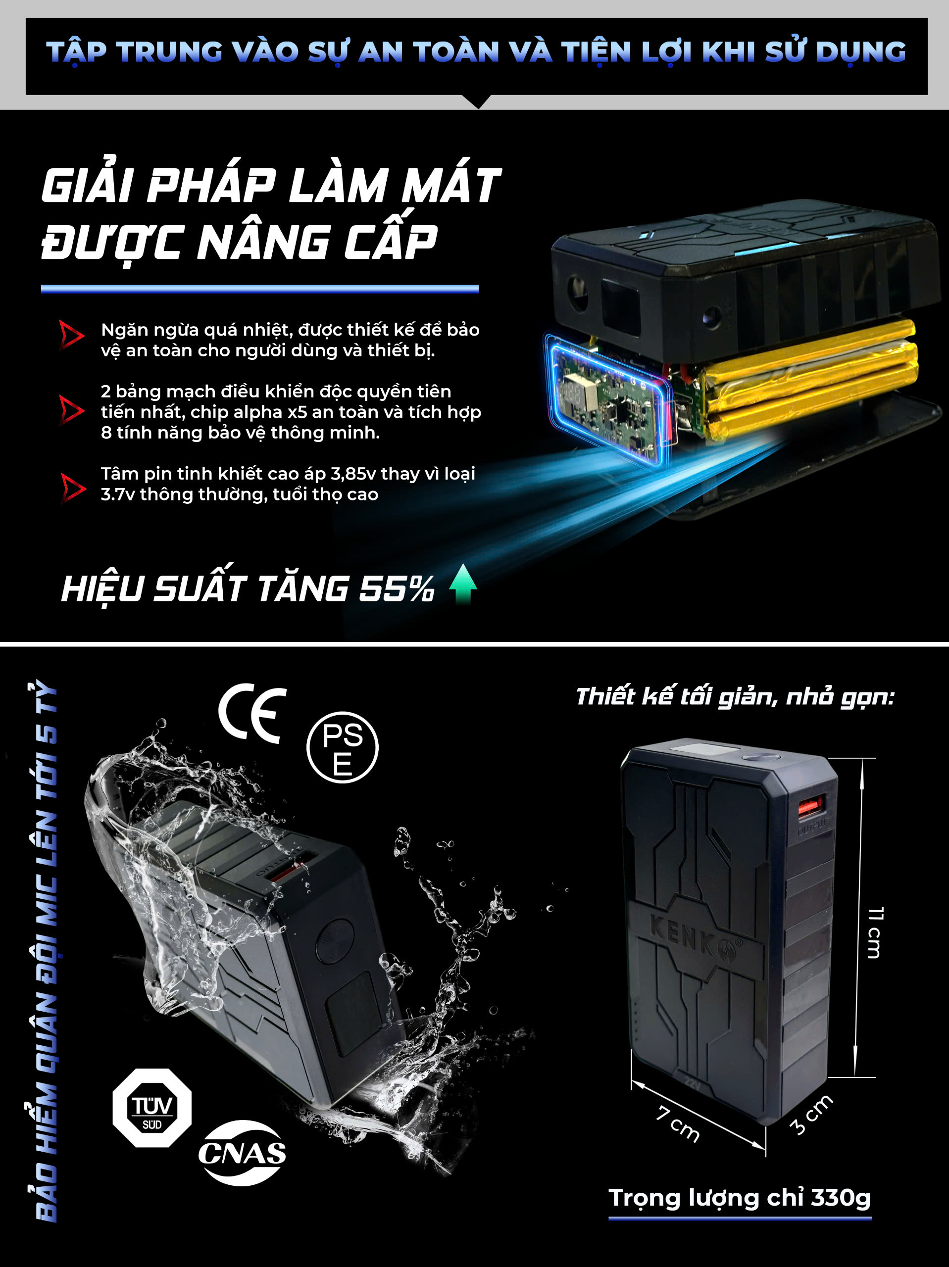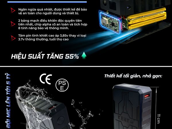 Với dung lượng siêu lớn lên đến 24.000mAh, pin KENKO ALPHA X5 có thể hoạt động liên tục từ 8,5 giờ đến 15 giờ tùy vào mức điện áp sử dụng.