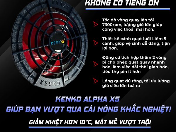 KENKO 22V ALPHA X5 không chỉ giúp giảm nhiệt, bảo vệ sức khỏe người lao động, mà còn góp phần tăng hiệu suất làm việc, giảm tình trạng mất sức do nóng bức. Nếu bạn đang tìm kiếm một bộ pin quạt mạnh mẽ, bền bỉ và đáng tin cậy, đây chính là lựa chọn hàng đầu.