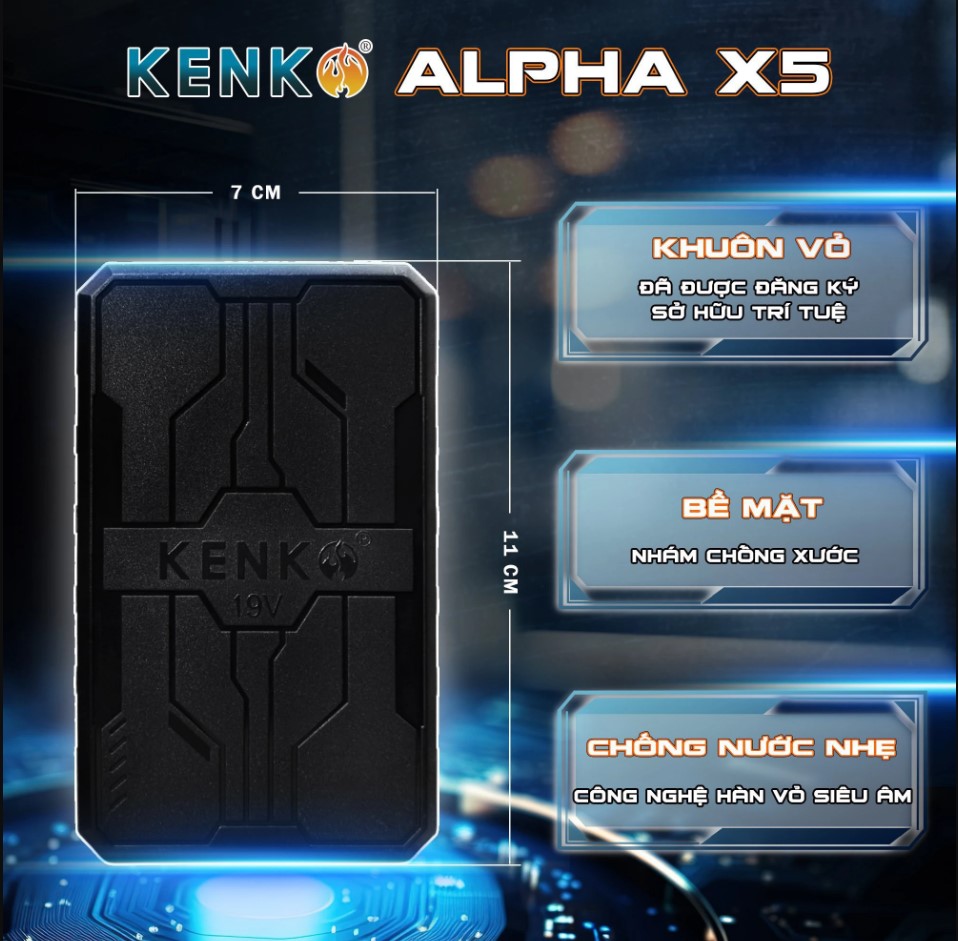 Pin áo điều hòa Kenko Alpha X5 2024 22V thiết kế siêu nhỏ gọn, chống nước hiệu quả, tích hợp bảng mạch kép an toàn, chip Alpha X5 điều tiết điện áp, sạc nhanh 6 giờ và chống nhiễu vượt trội, đảm bảo hiệu suất ổn định tối ưu.